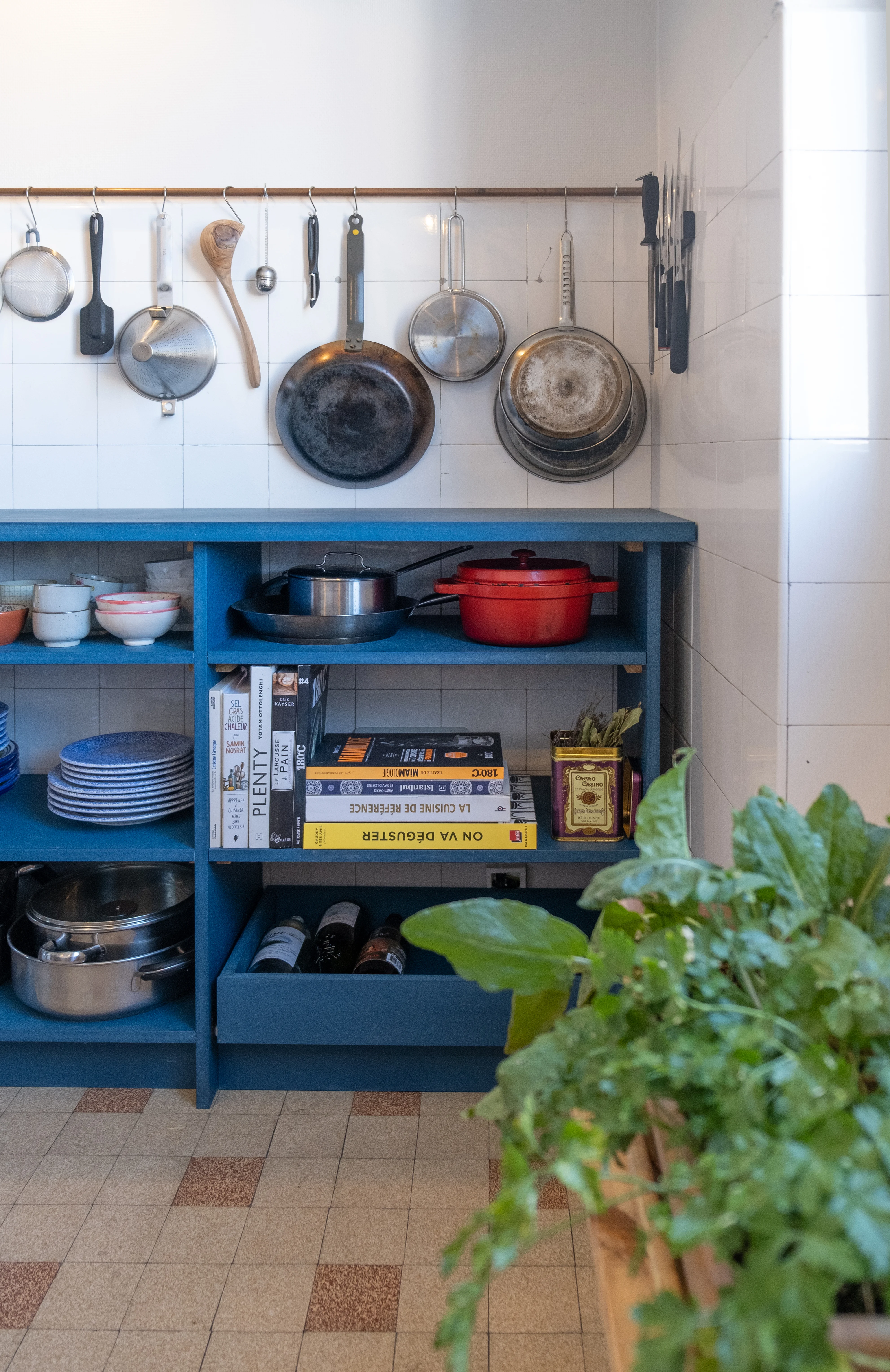 Cette transparence fonctionnelle favorise la convivialité : chacun peut s'approprier la cuisine et comprendre son organisation d'un seul regard. Les ustensiles, la vaisselle et les provisions sont accessibles immédiatement, sans ouvrir de portes. Cette approche correspond à une manière plus libre et décontractée d'habiter.