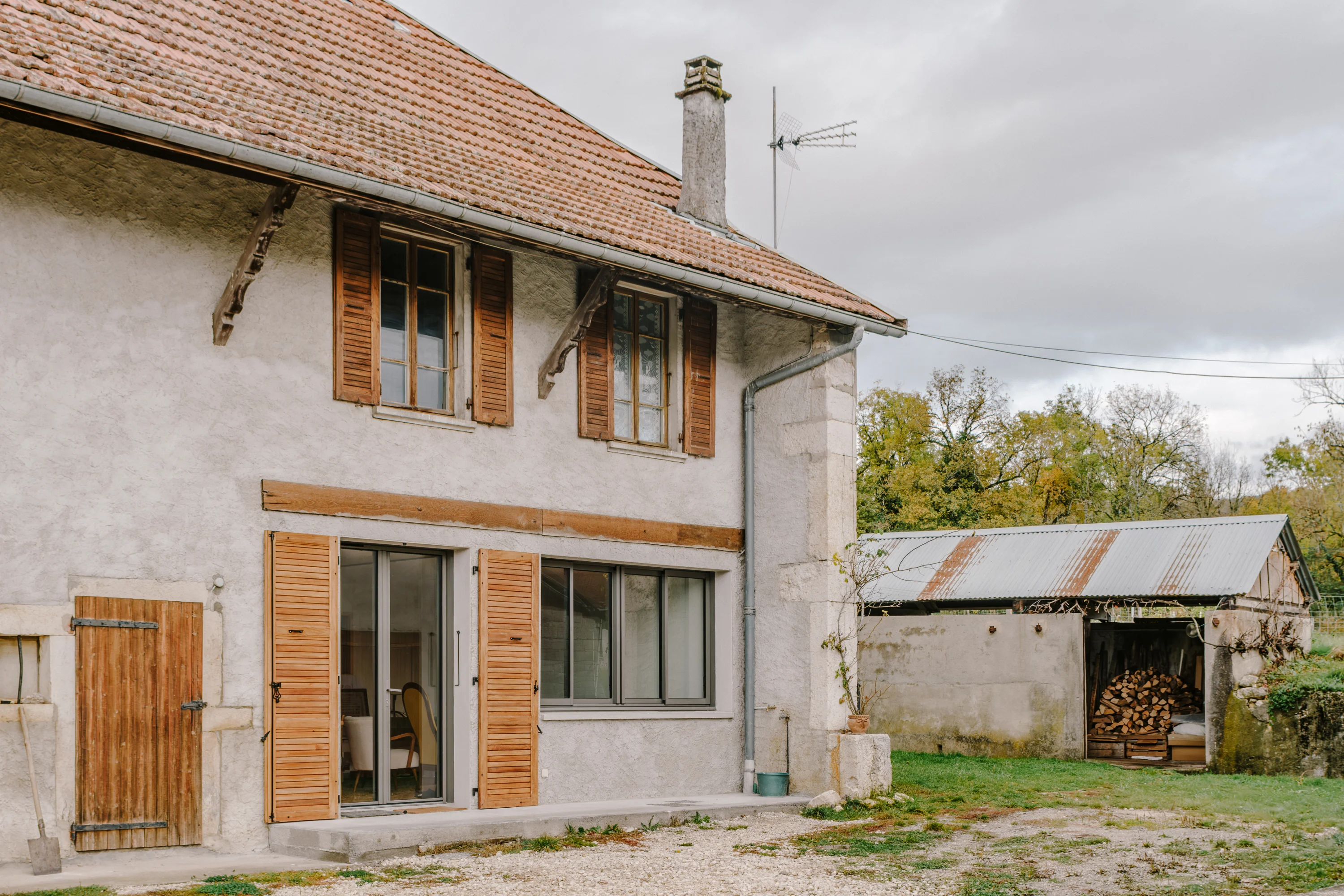 Située à Champagne-en-Valromey dans l'Ain, cette ancienne longère bugiste abrite un atelier agricole transformé en logement indépendant. Le projet accompagne la métamorphose de ce bâti rural en une habitation lumineuse, chaleureuse et sobre en énergie, tout en préservant l'héritage familial et le caractère authentique du lieu.